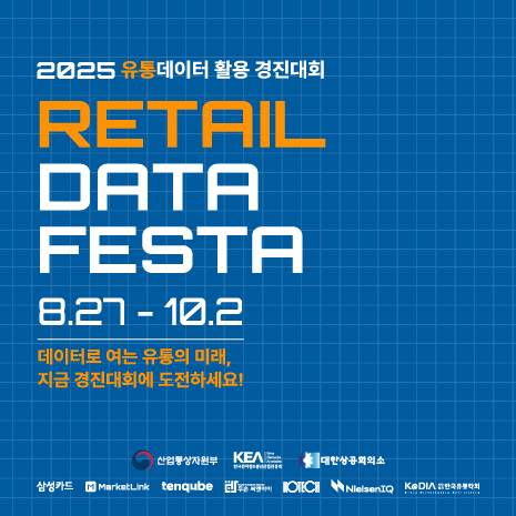컨텐츠 정보 목록 마감 2025 유통데이터 활용 경진대회 23 0 본문 한국전자정보통신산업진흥회 기업형태 비영리단체/협회/재단 참여대상 대상 제한 없음 시상규모 780 만원 접수기간 시작일 2025-08-27 마감일 2025-10-02 홈페이지 https://festa.kdlc.or.kr/circulation/support/68ae9dd89230dd20edbe6969 활동혜택 상장 수여 활동분야 기획/아이디어 추가혜택 - 공유하기 홈페이지 지원 상세내용 지원서 다운로드 첨부 지원서 파일 없음 담당자 정보 담당자 한국전자정보통신산업진흥회 연락처 이메일 댓글 0 등록된 댓글이 없습니다. 로그인한 회원만 댓글 등록이 가능합니다. 목록